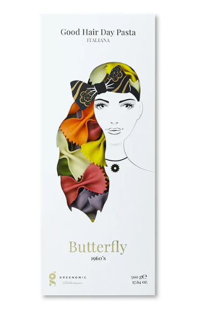 Les Butterfly 1960 – Greenomic sont des pâtes artisanales au design élégant, inspirées de la forme papillon (type farfalle), revisitées dans un style vintage.